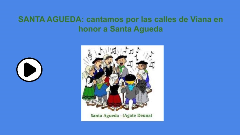 Como todos los años, el alumnado de Euskera, celebra el día de Santa Águeda cantando por las calles de Viana, para que todo el pueblo pueda vernos y disfrutar de este día con nosotros y nosotras.